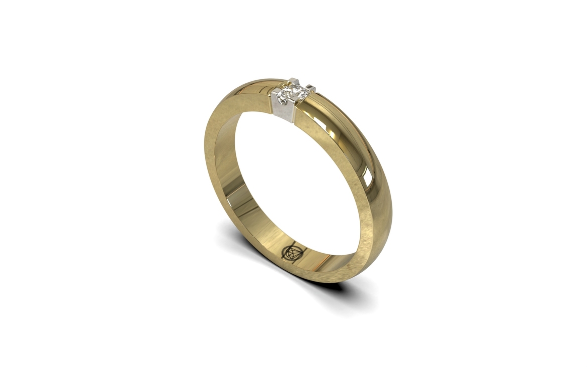 14 karaat geel met wit goud alliance ring met diamant. Memoire ring.